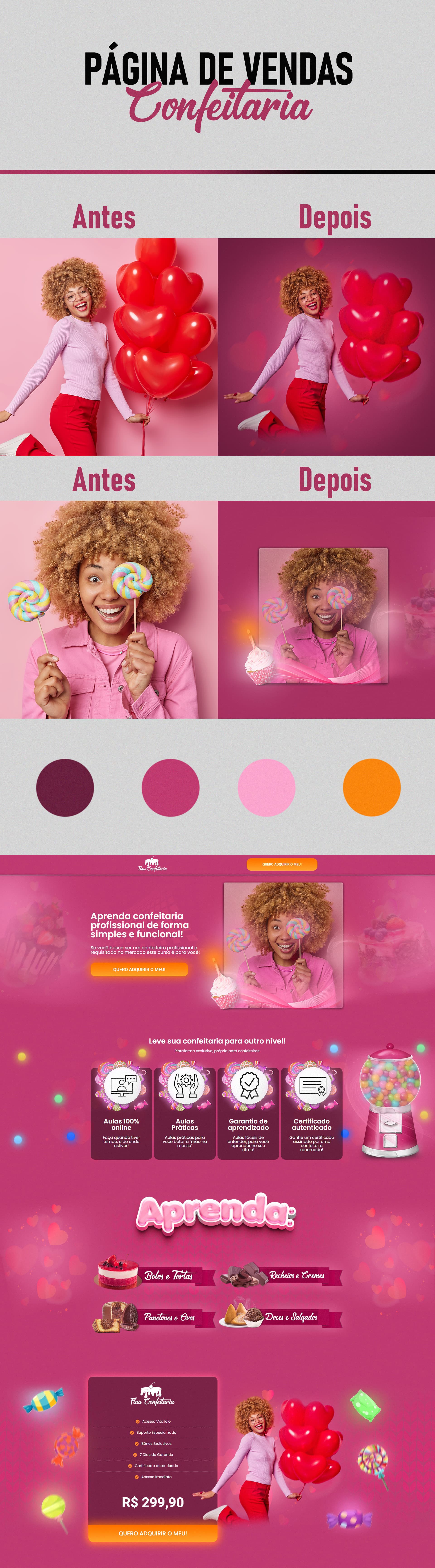 A proposta consiste em uma página de vendas simples porém atraente, para um curso de confeitaria!