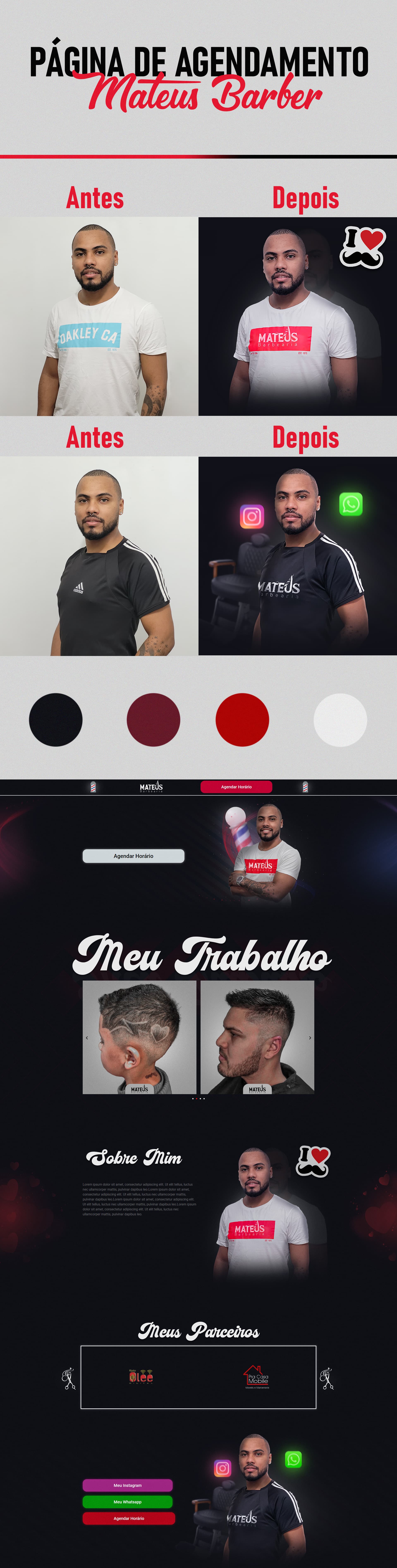 A proposta consiste em uma página de agendamento de serviços de barbearia, contando com portfólio para mostrar trabalhos e "sobre mim" para contar um pouco da sua caminhada como barbeiro.