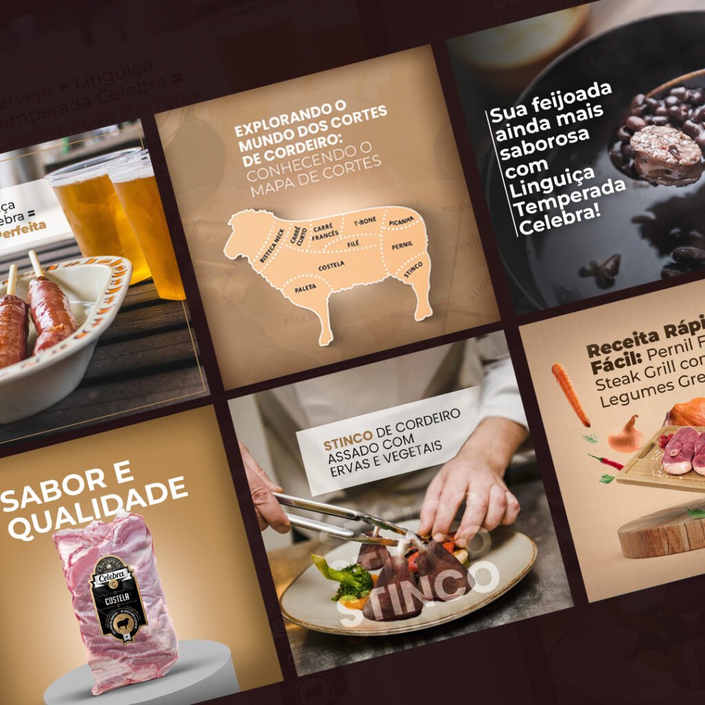 Celebra Gourmet é uma empresa de cortes de cordeiro. Seu objetivo é divulgar sua marca e mostrar como a carne de cordeiro pode ser utilizada no dia a dia.